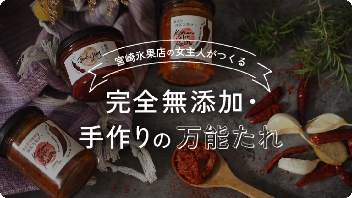 毎日食べるものだからこそ、家族に食べさせたいと思えるものを。宮崎氷菓店の女店主がつくる、白砂糖も保存料も使用しない、完全無添加・100%オーガニックの韓国万能たれと無添加コチュジャンです。