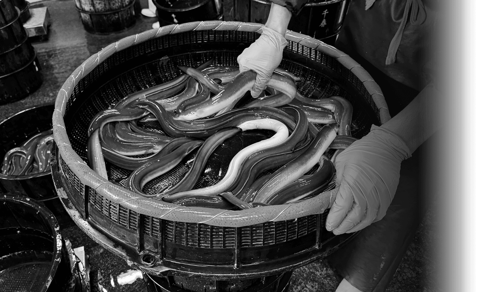 最高品質な青うなぎを安定提供するために厳格な品質基準を設け、旬の時期を見極めて国内外(日本・台湾・中国)の提携養殖場からも新鮮な活鰻(生きたうなぎ)を仕入れています。